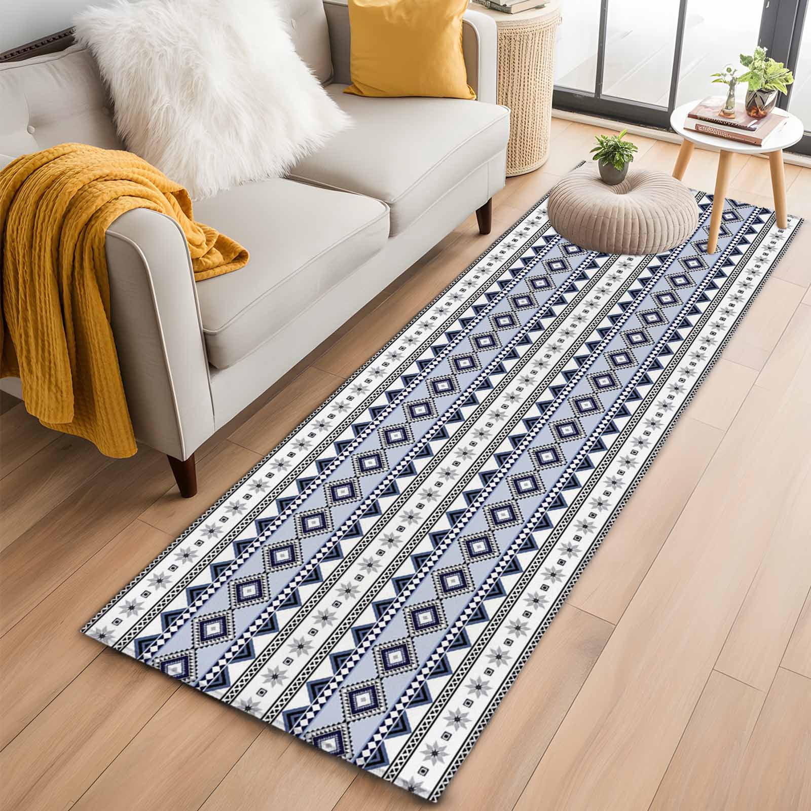 Area Rug 2x6ft Blue Ethnic Stripes Carpets Indoor Floor Area Mat ...