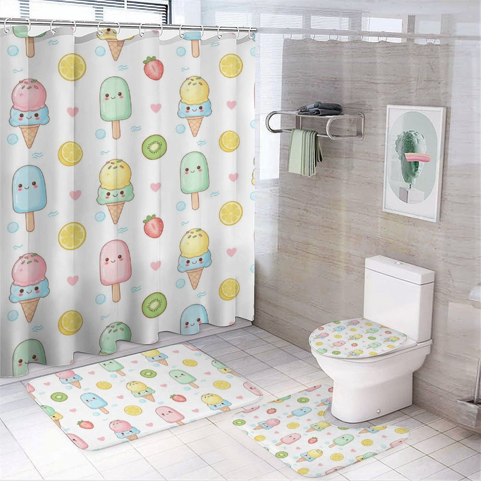 Chilfamy 4PCS Smiling Ice Cream Cones Waterproof Shower Curtain Sets ...