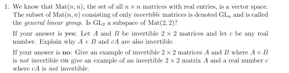 Solved 1. We know that Mat(n,n), the set of all n x n | Chegg.com