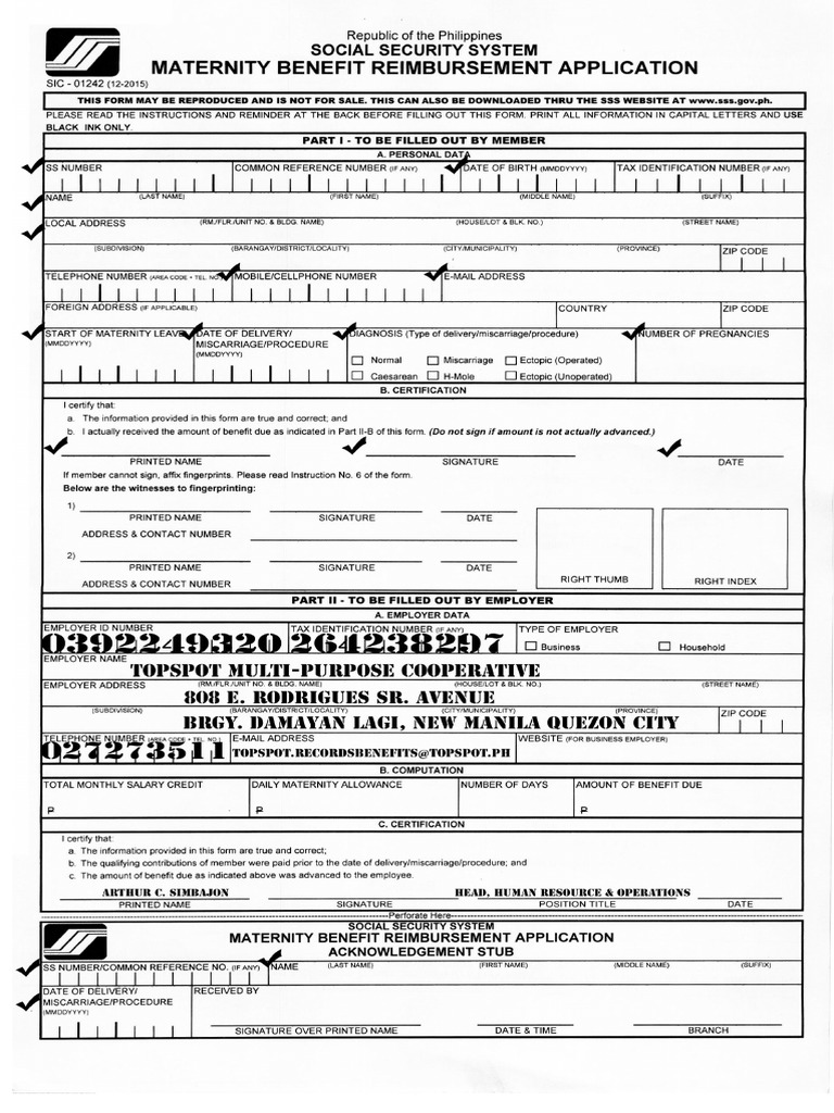 Mat-2 - Maternity Reimbursement (Republic Of The Philippines Social ...