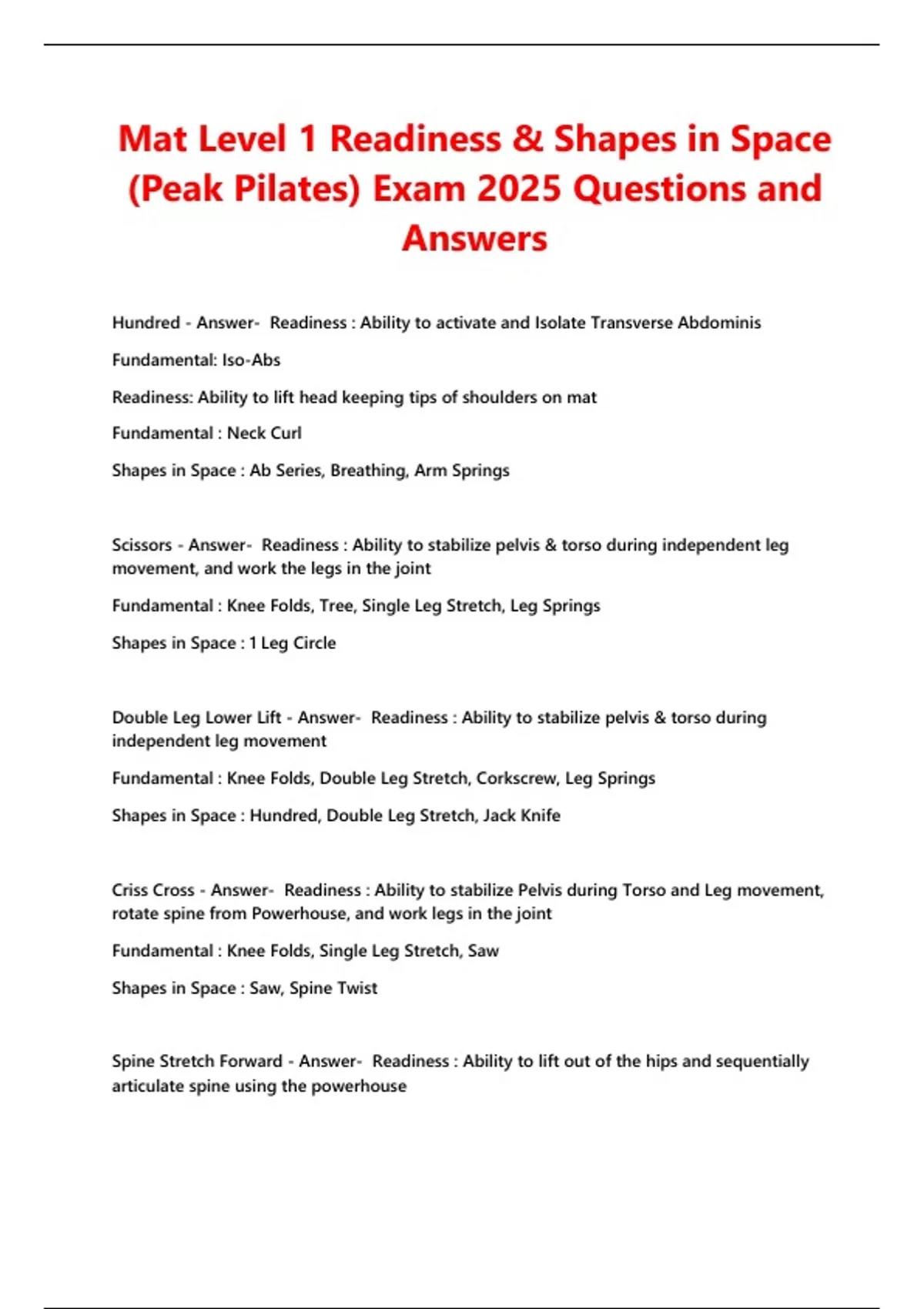 Mat Level 1 Readiness & Shapes in Space (Peak Pilates) Exam 2024 ...