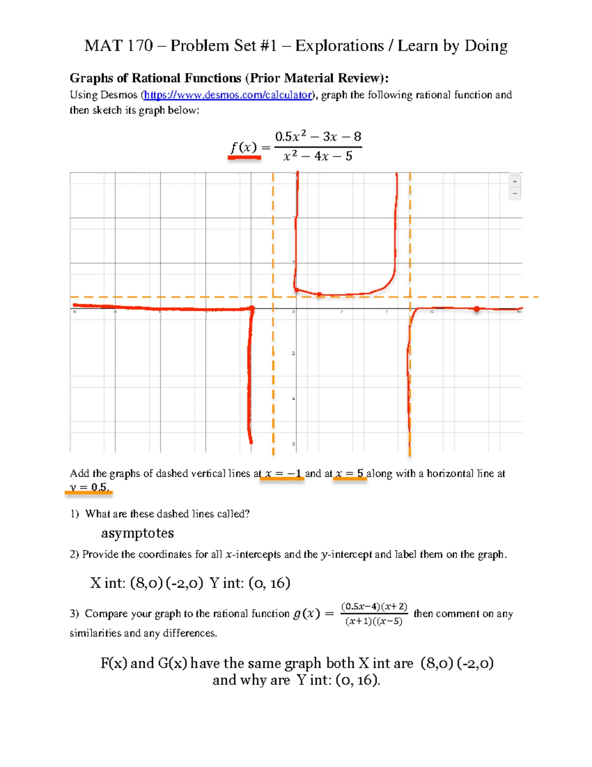MAT 170 Problem Set: Graphs of Rational Functions and | Course Hero