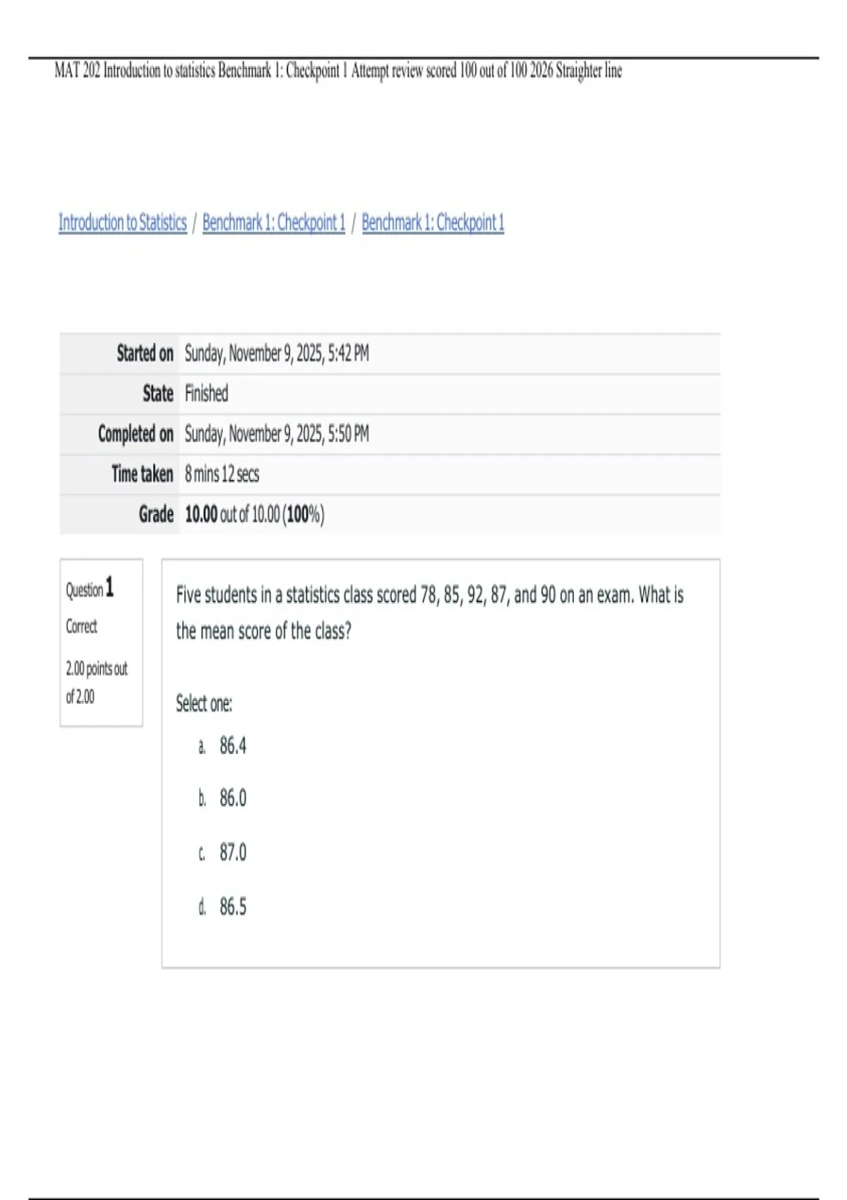 MAT 202 Introduction to statistics Benchmark 1: Checkpoint 1 Attempt ...