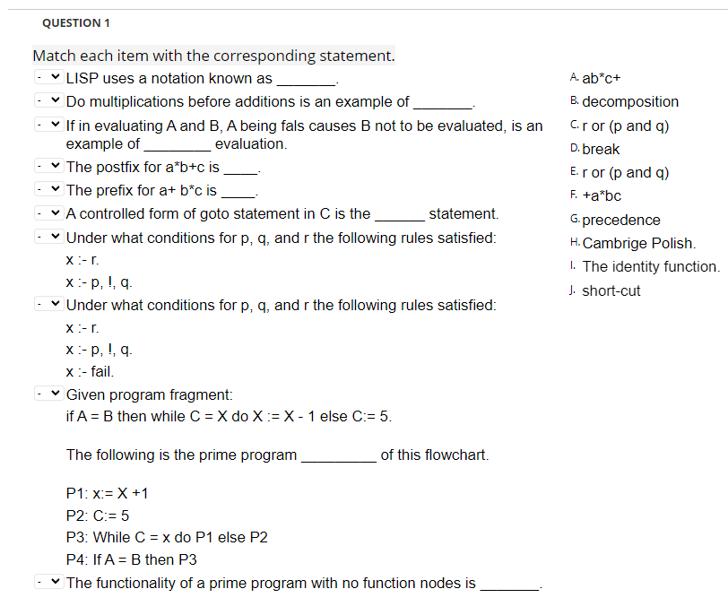 Solved Match the items. The task is to match the lettered | Chegg.com