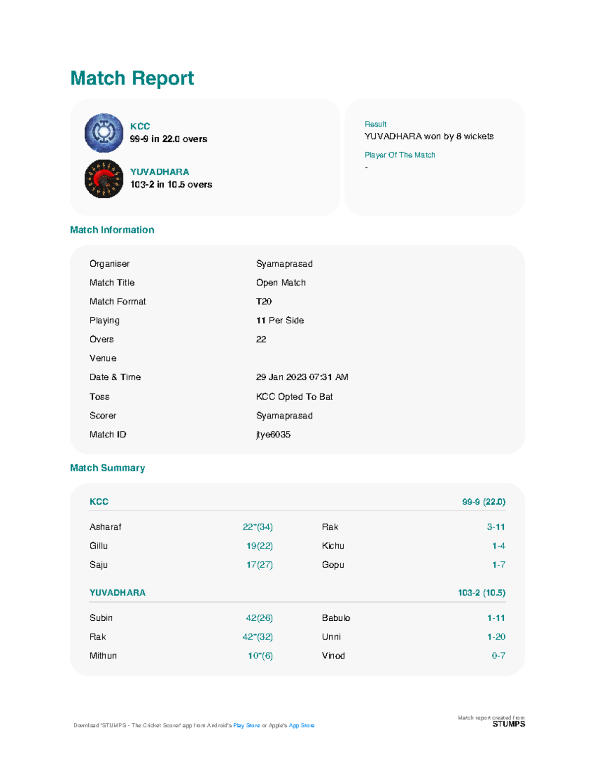 Stumps Match Report-12 - Match report created from Match Report KCC 99 ...