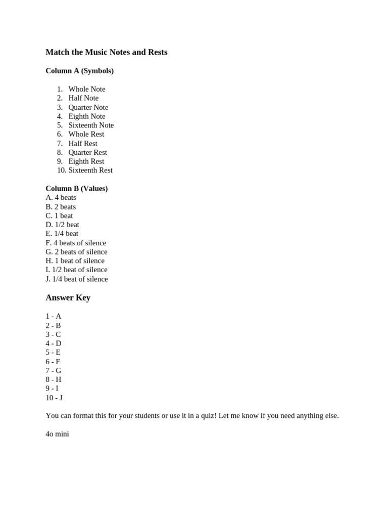 Match The Music Notes and Rests | PDF | Language Arts & Discipline | Art