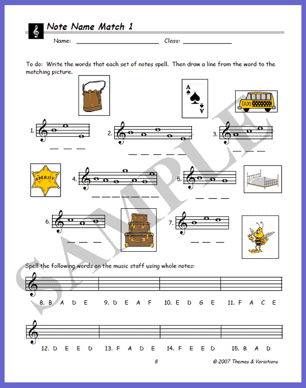 Match Notes to Pictures Worksheets - Free Image & PDF Printables
