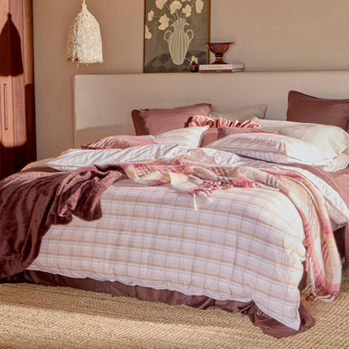 Daisy Reversible Check/Stripe Quilt Cover Set - Pillow Talk