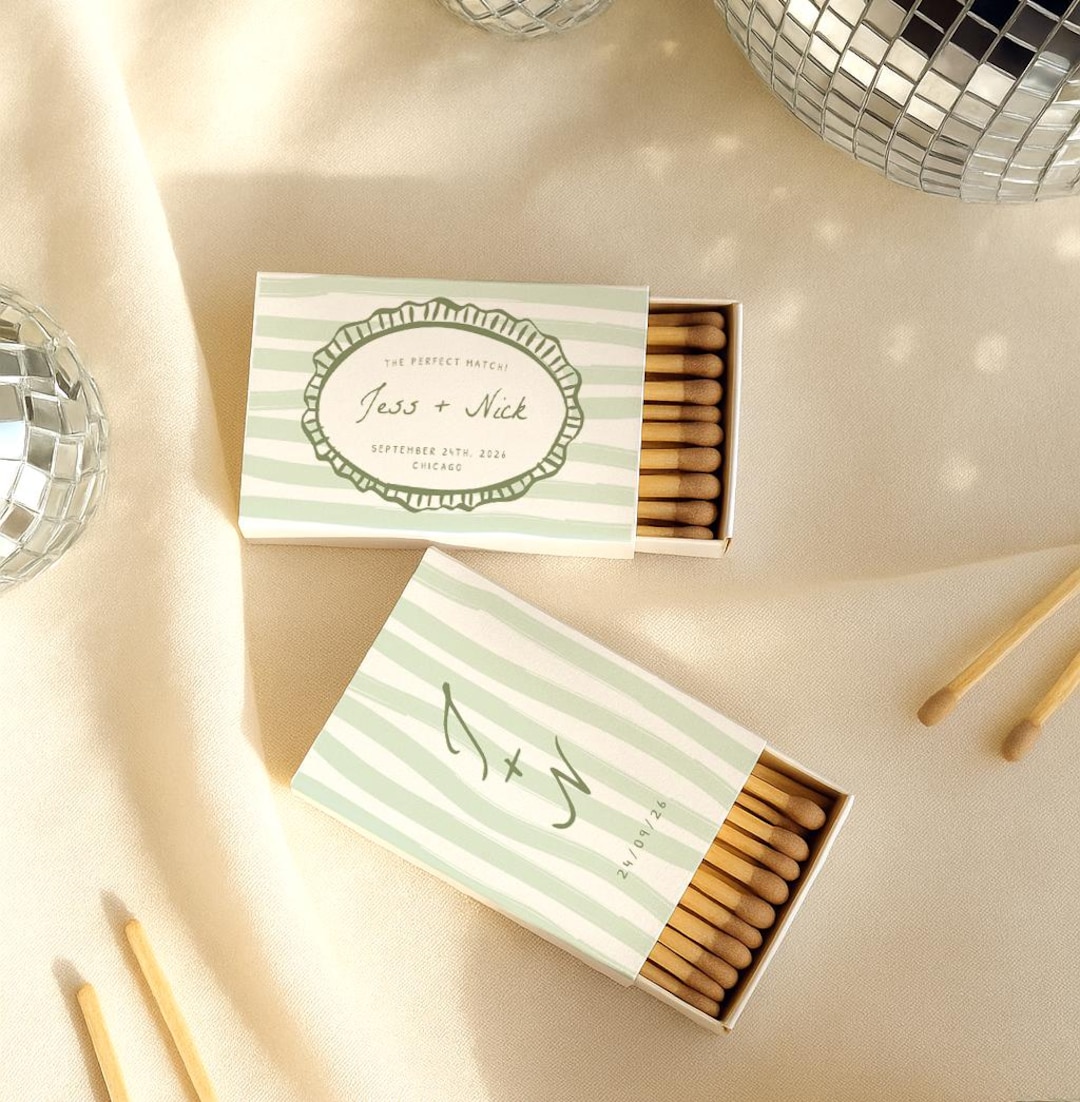 Semi Custom Wedding Matchbox Design | Printing File Provided | Striped ...