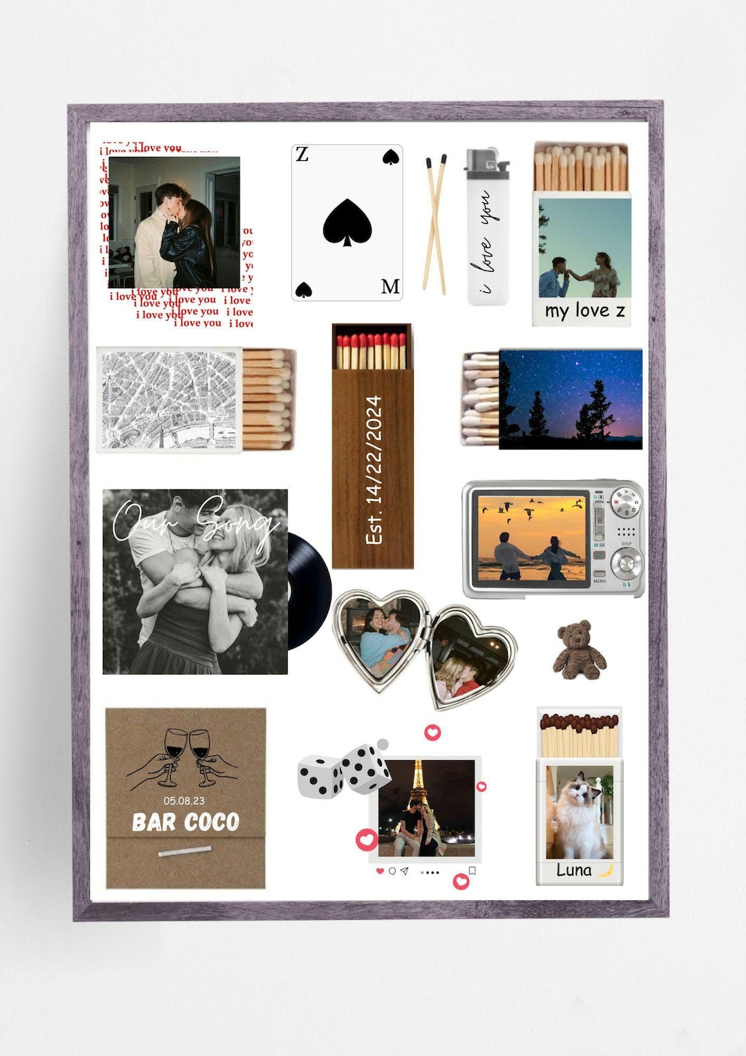 Personalized Matchbox Art Print Template for Him & Her, Editable Canva ...