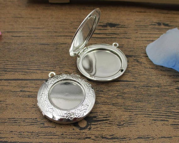 2 Round Bezel Photo Lockets Match 20mm Cabochon SetSilver | Etsy
