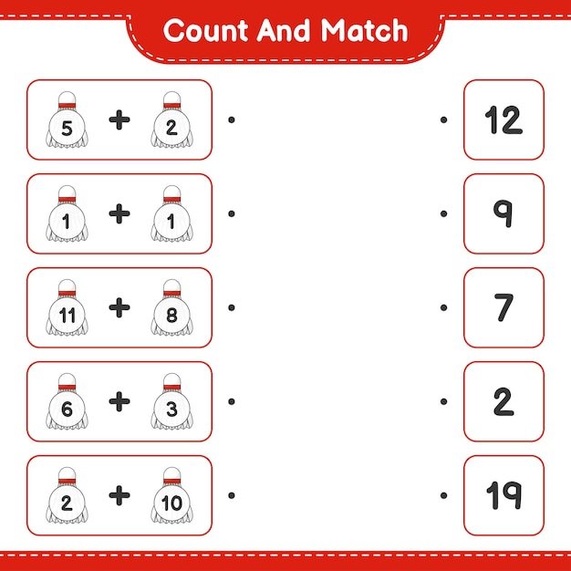 Math worksheet template with matching numbers Vector Image