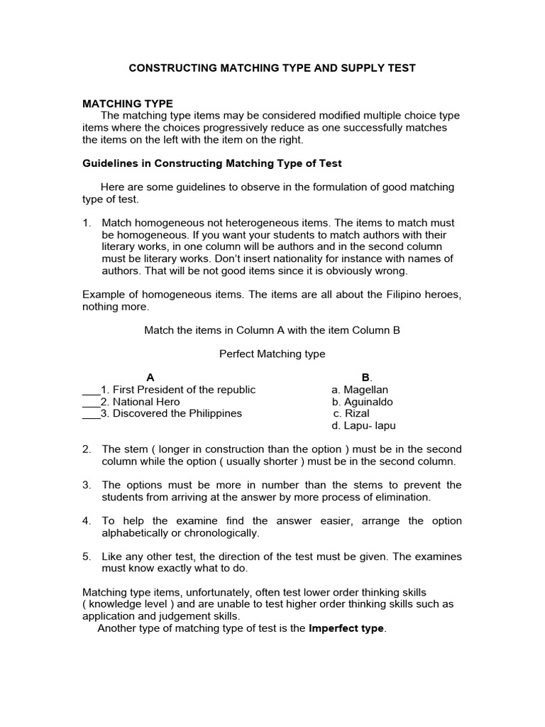 Guidelines For Writing Matching Type Test Items PDF | PDF ...