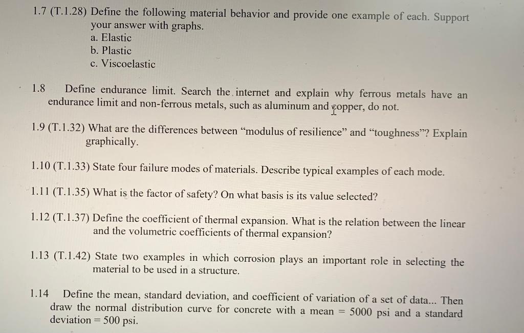 Solved 1.7 (T.1.28) Define the following material behavior | Chegg.com