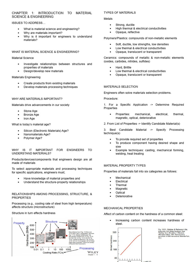 Class Notes - CLASS NOTES Study Topic 1 Introduction to materials and ...