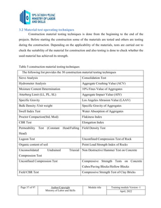The Typical Testing to be conducted for Material Assessment [22 ...