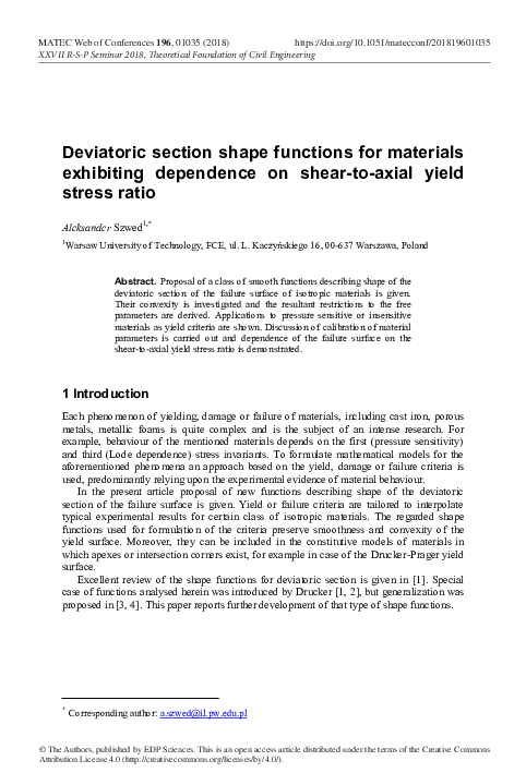 (PDF) Deviatoric section shape functions for materials exhibiting ...