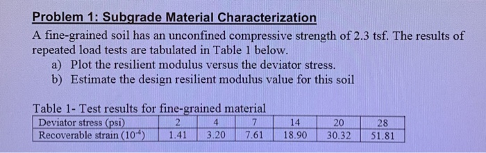 Problem 1: Subgrade Material Characterization A | Chegg.com