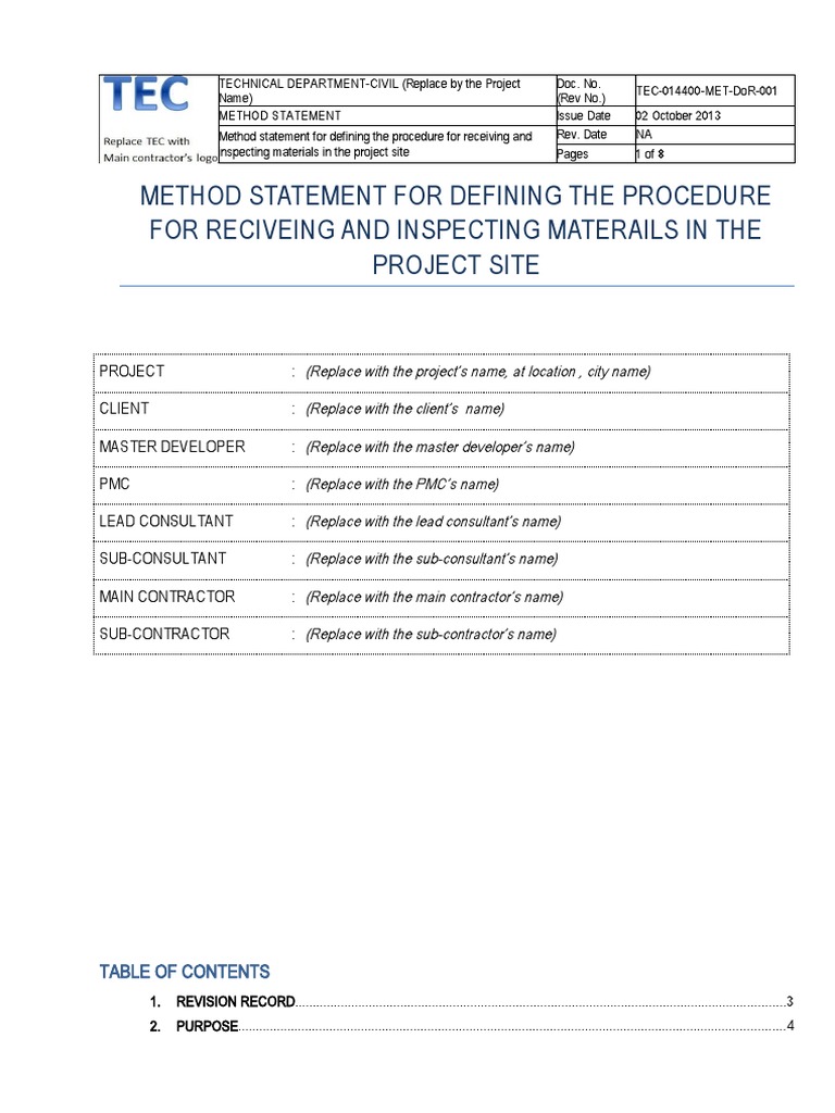 7. Material Receiving Procedure | Specification (Technical Standard ...