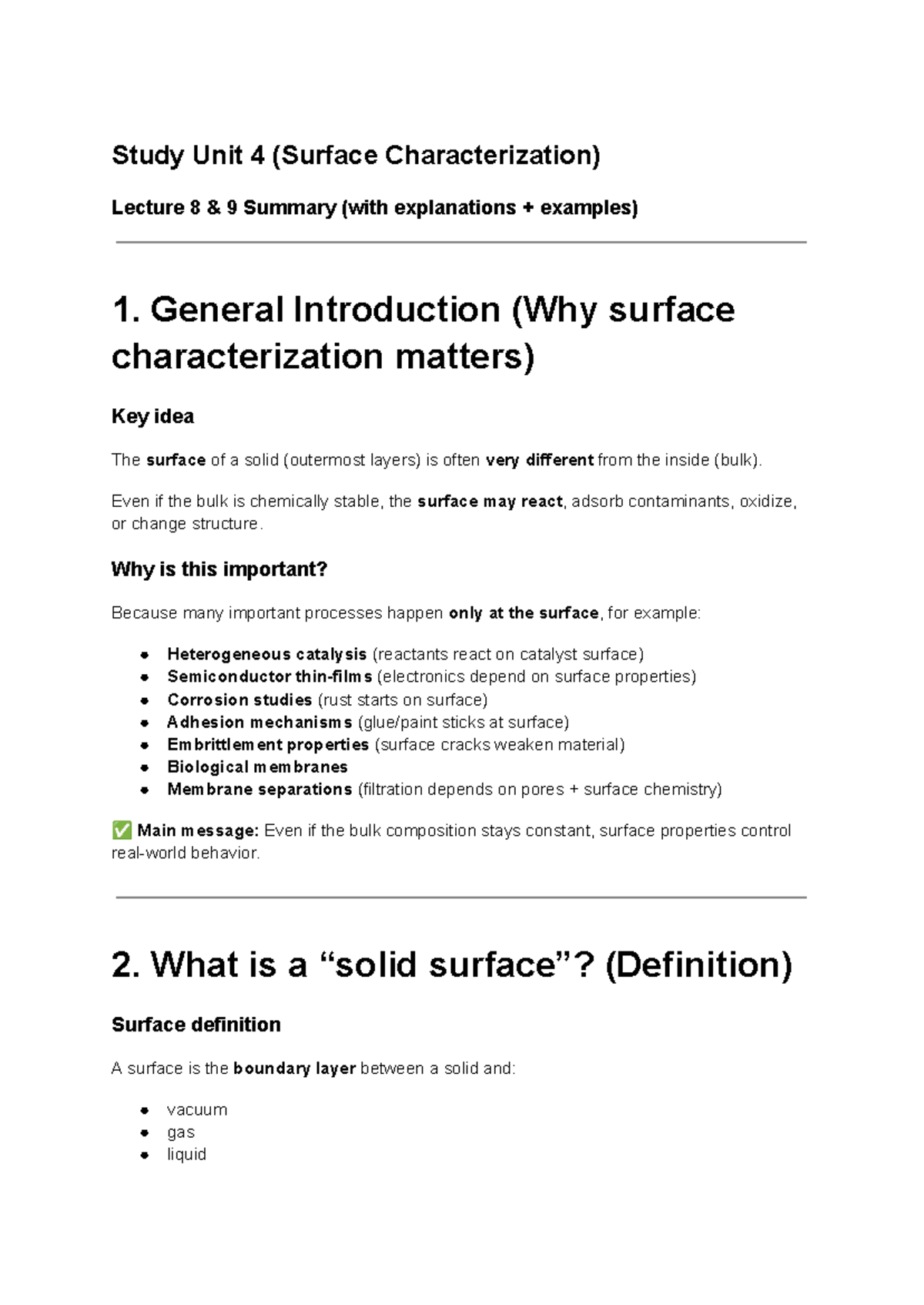 Study Unit 4 (Surface Characterization) Lecture 8-9 Summary with ...