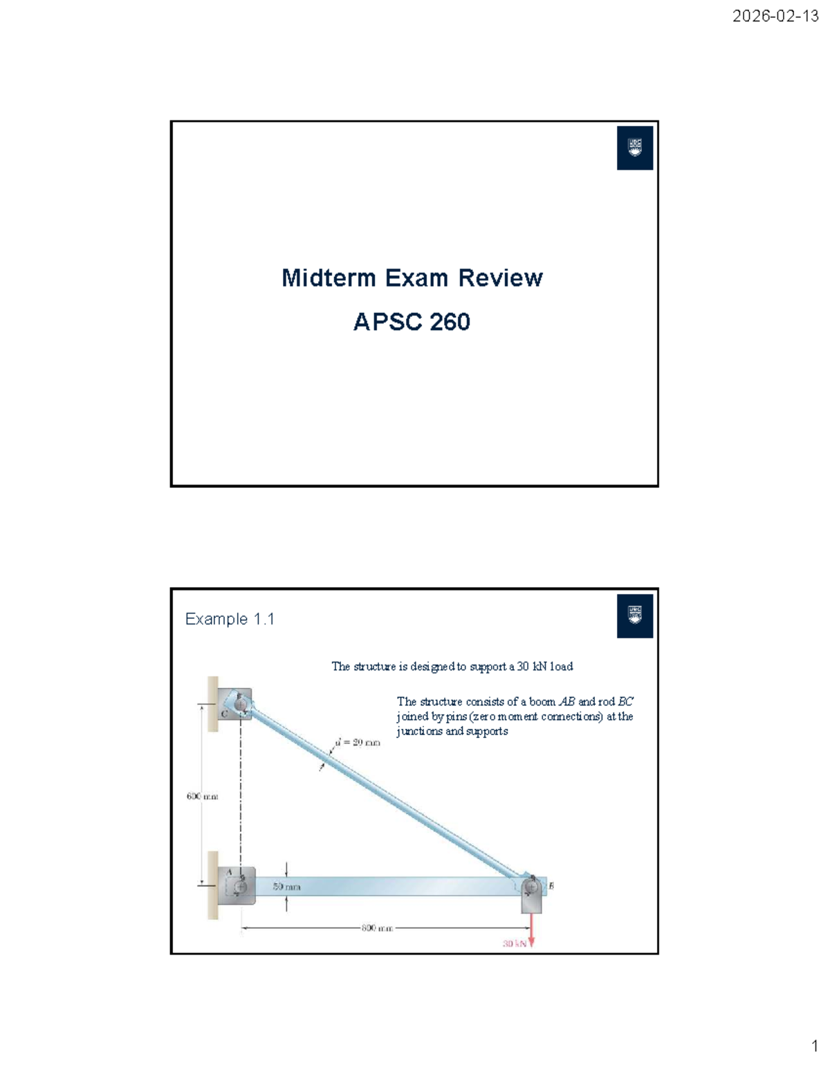 APSC 260 Midterm Exam Review: Structural Analysis Examples - Studocu