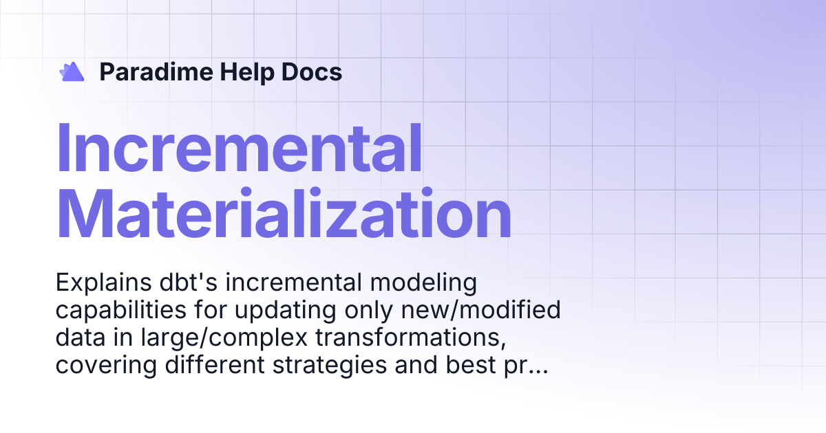 Incremental Materialization | Paradime Help Docs