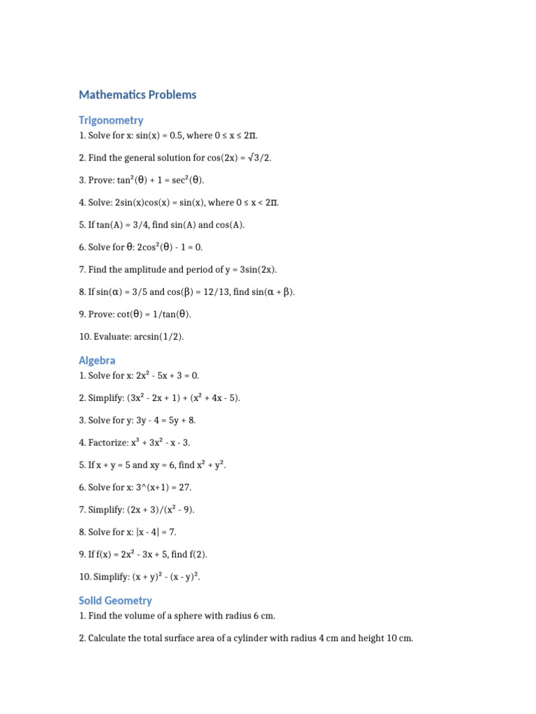 Mathematics Problems | PDF | Euclid | Trigonometry