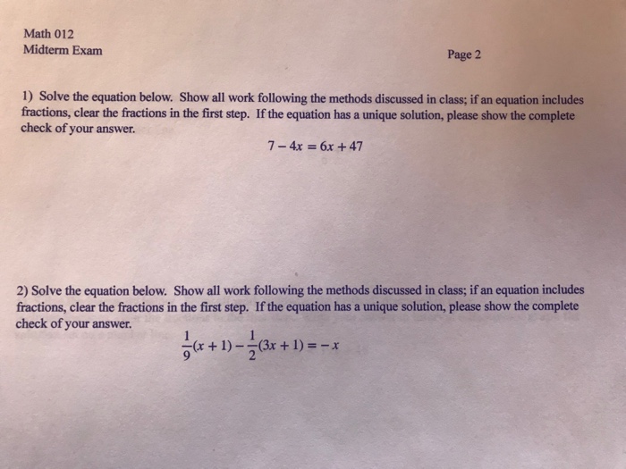 Solved: Math 012 Midterm Exam Page 2 1) Solve The Equation... | Chegg.com