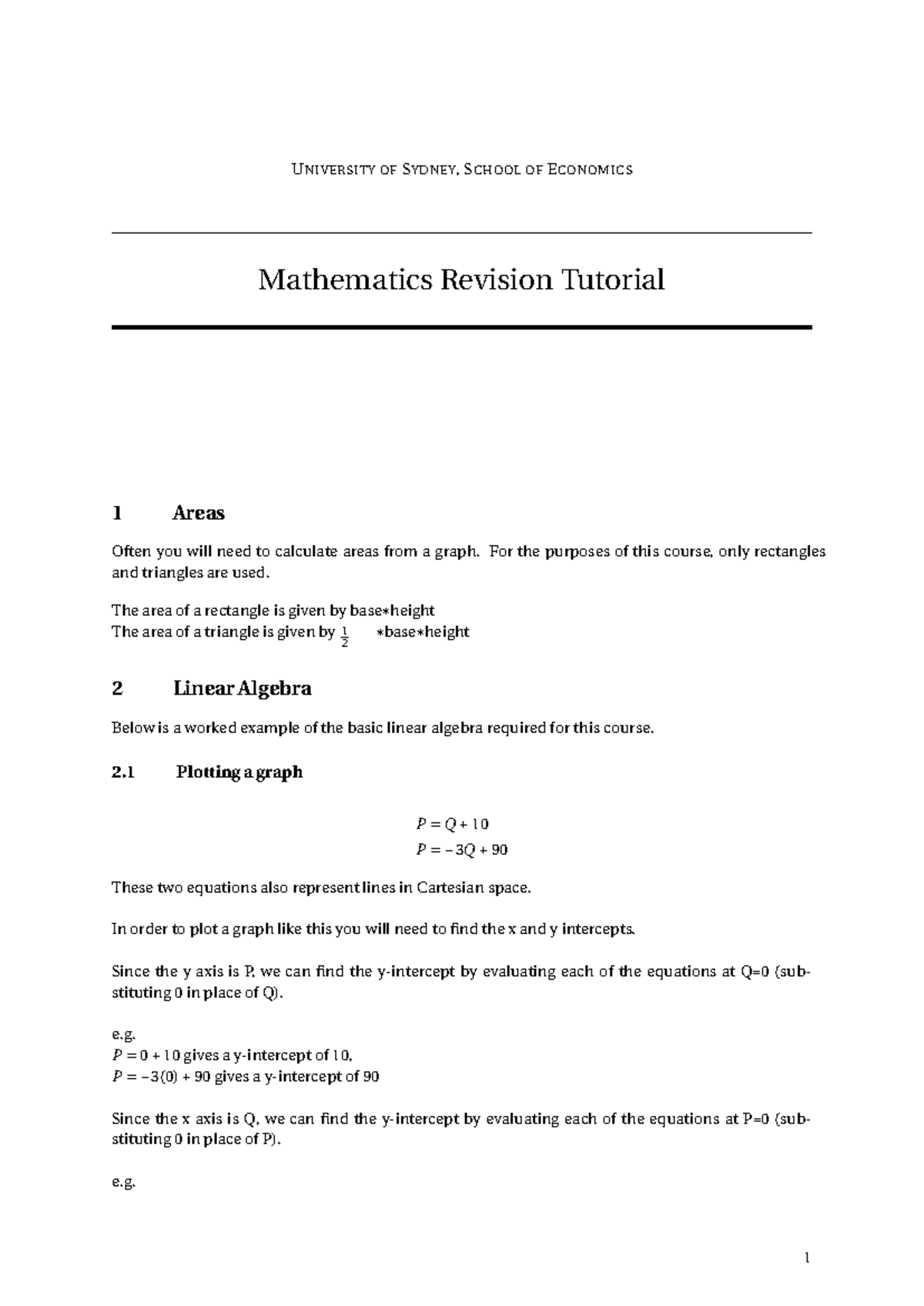 Math revision - Math rev - UNIVERSITY OF SYDNEY, SCHOOL OF ECONOMICS ...