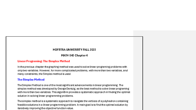 HOFSTRA UNIVERSITY FALL 2023 MATH 040 Chapter 4: The Simplex Method ...