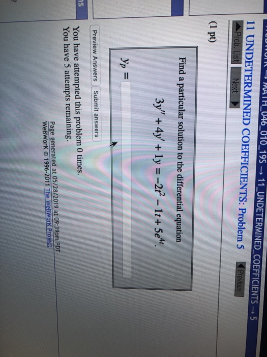 HW9.pdf - MATH 046 020 19S Assignment 11 UNDETERMINED COEFFICIENTS due ...
