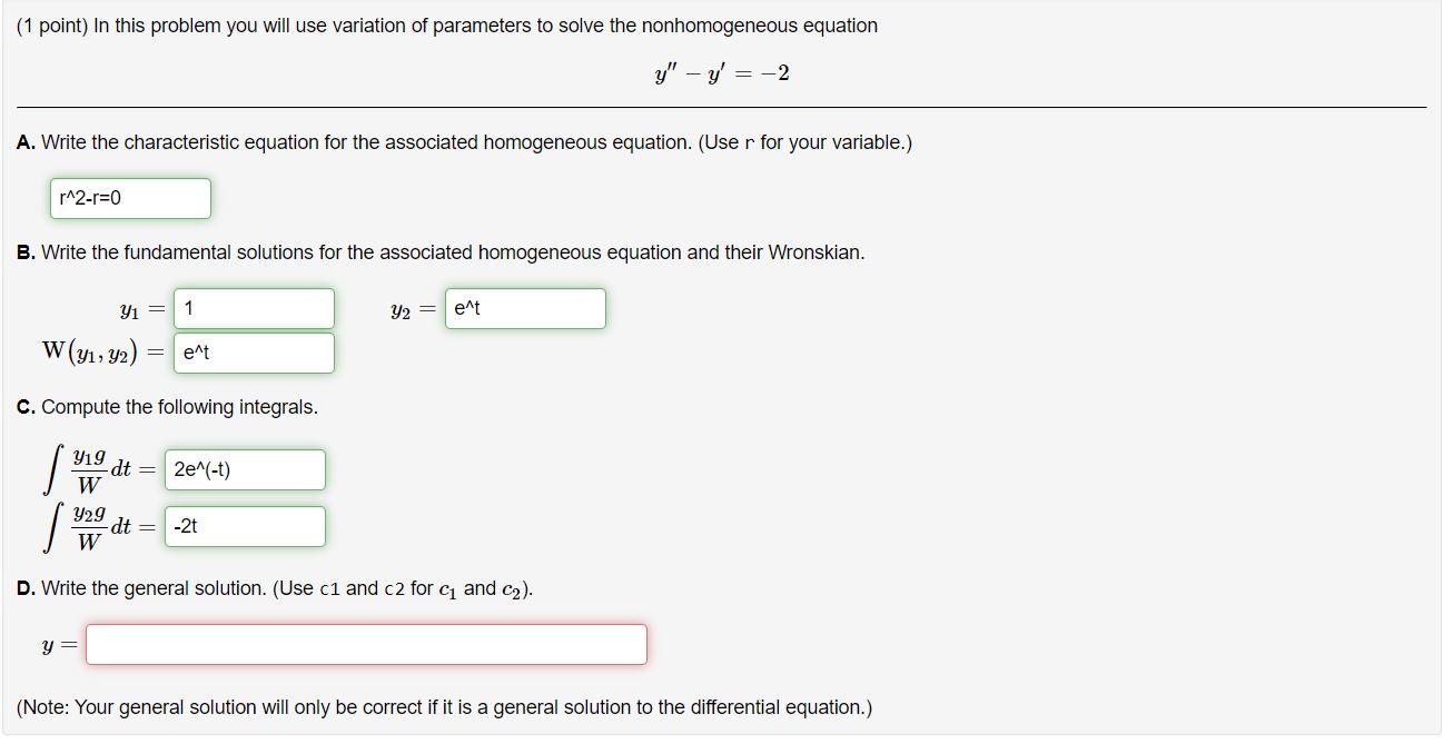 Solved (1 point) In this problem you will use variation of | Chegg.com