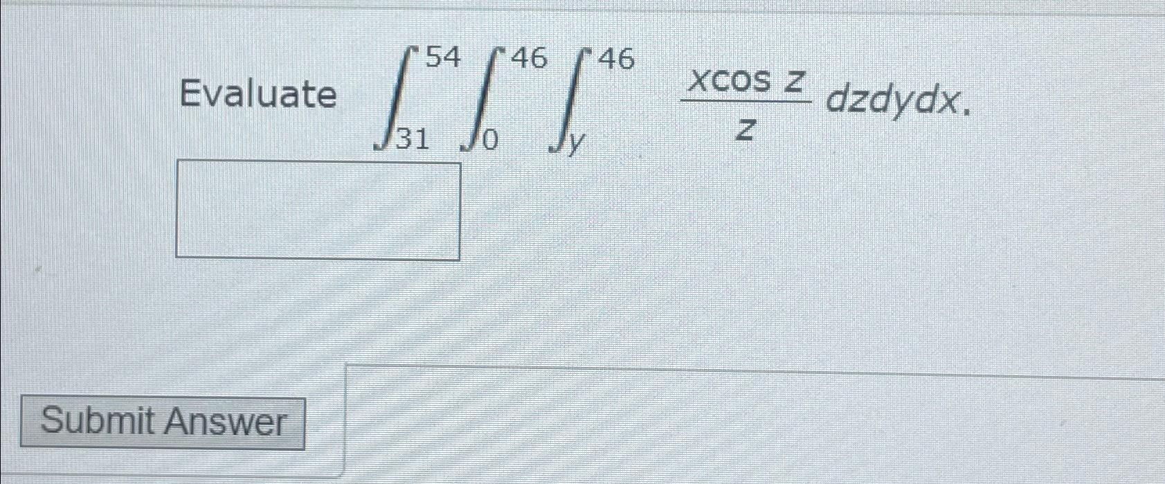 Solved Evaluate ∫3154∫046∫y46xcoszzdzdydx | Chegg.com