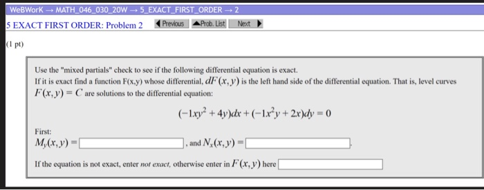 Solved WeBWork - MATH_046_030_20W 5_EXACT_FIRST_ORDER 2 5 | Chegg.com
