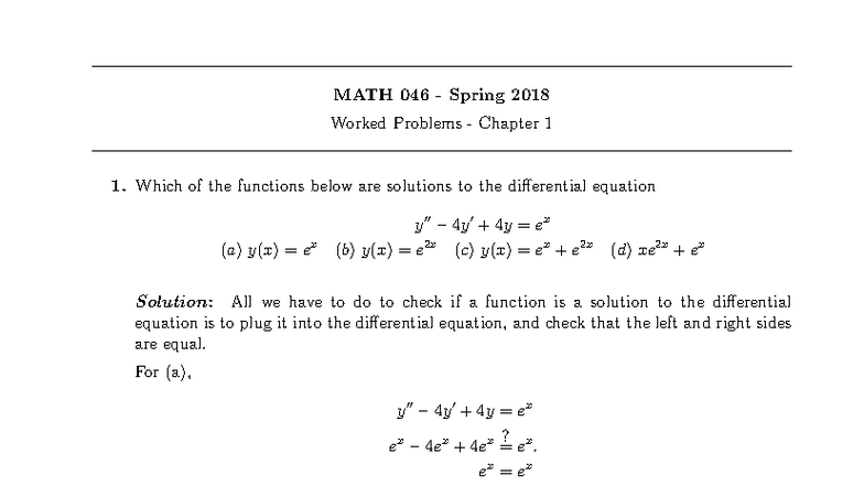 MATH 046 Spring 2018 Worked Problems on Differential Equations - Studocu
