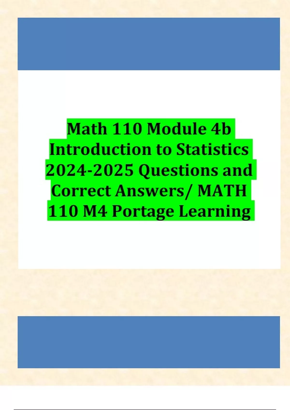 Math 110 Module 4b Introduction to Statistics Questions and Correct ...