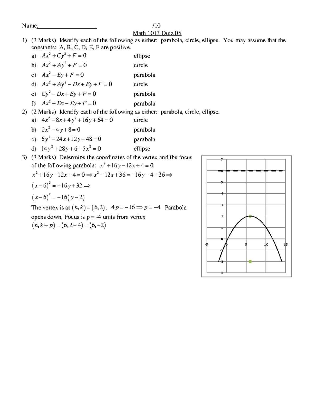 Quiz 05s - quiz - Name: / 10 Math 1013 Quiz 05 (3 Marks) Identify each ...