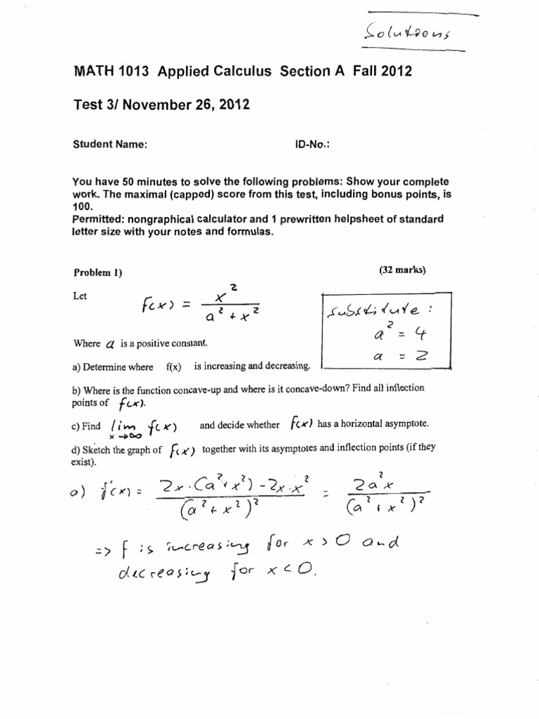 Test 1, questions and answers - MATH 1013: Applied Calculus I Test 1 ...