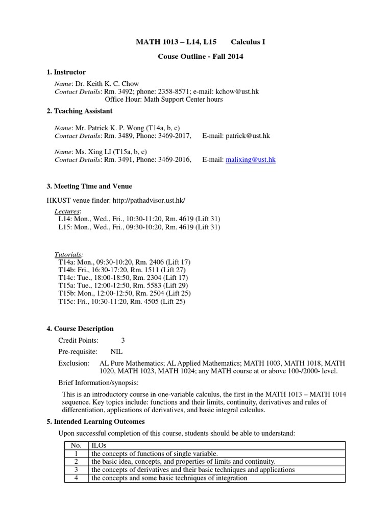 outline math 1013 calc.pdf - Course Outline Faculty of Science ...