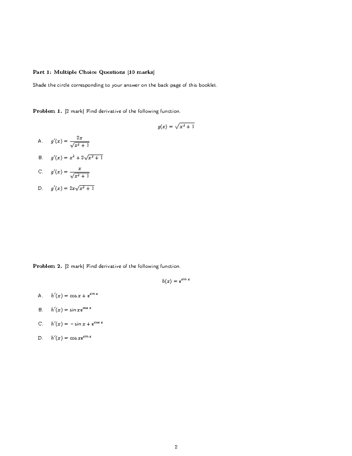 Master Math 1013: Multiple Choice Questions and Calculus Problems ...