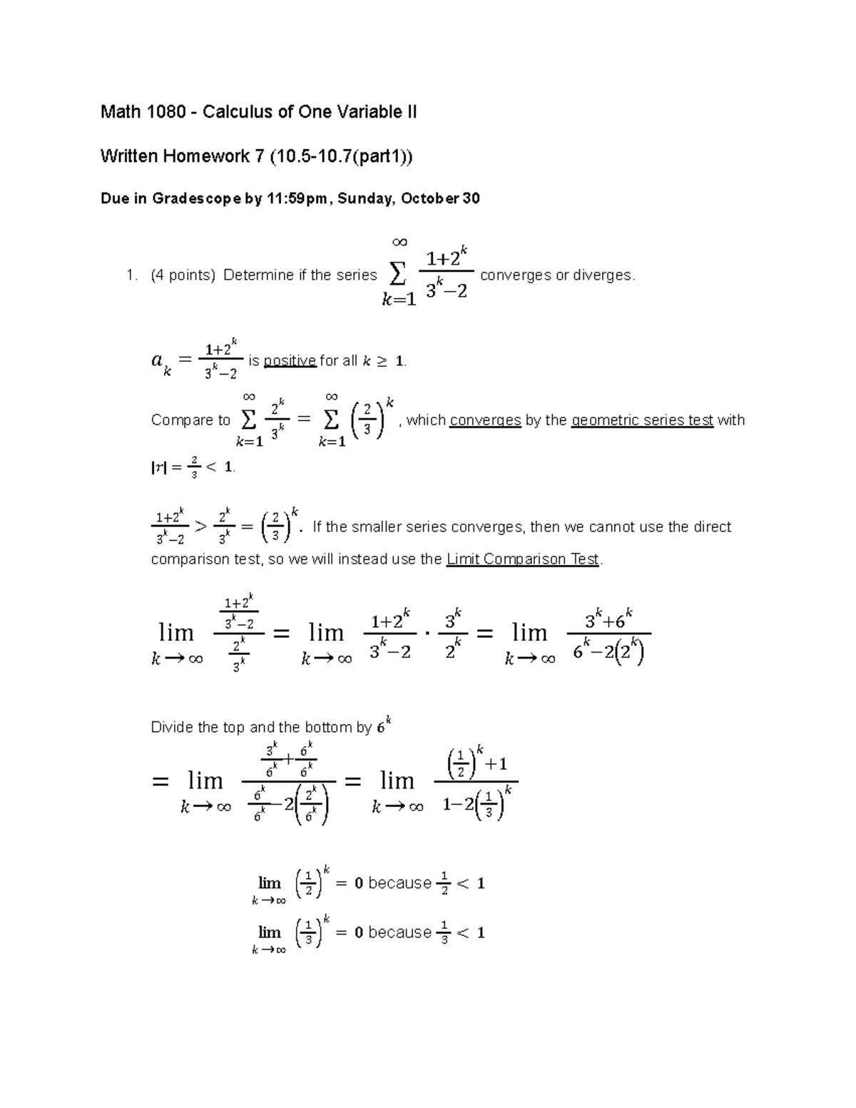 Math 1080 - HW8 - 10.7b-11.1 - Math 1080 - Calculus of One Variable II ...