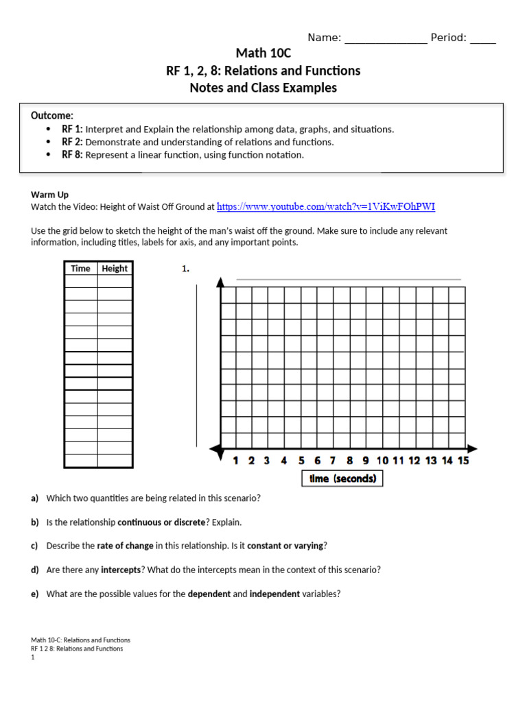 Math 10C RF 1, 2, 8: Relations and Functions Notes and Class Examples ...