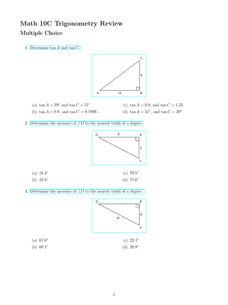 Math 10C Trig Review JK | PDF | Triangle Geometry | Elementary Geometry