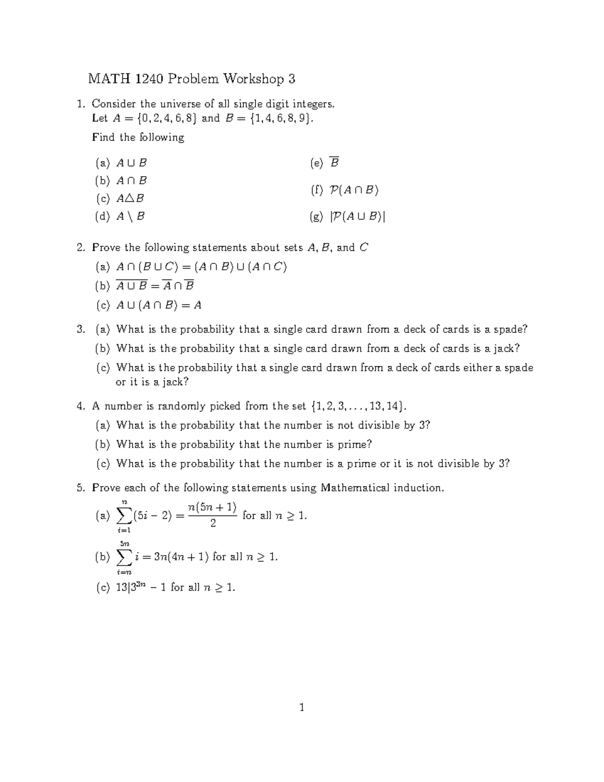 1240-W3 A .pdf - MATH 1240 Problem Workshop 3 1. Consider the universe ...