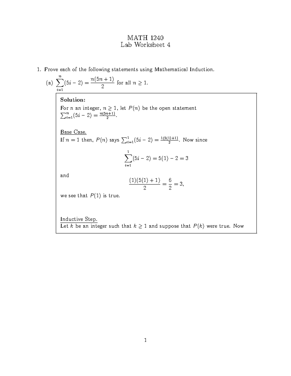 Worsheet 4solutions - tutorial - MATH 1240 Lab Worksheet 4 Prove each ...
