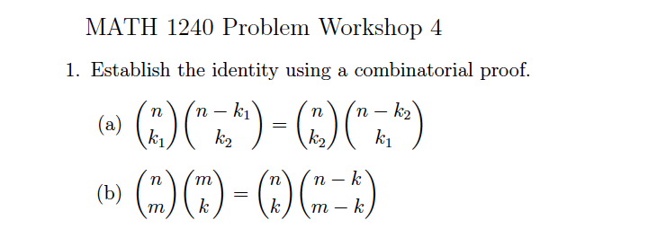 Solved MATH 1240 Problem Workshop 4 1. Establish the | Chegg.com