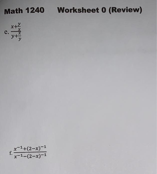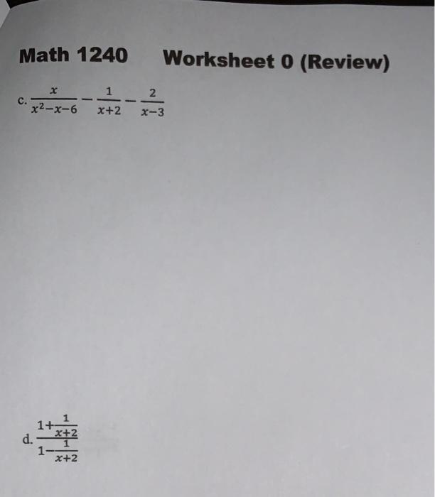 Solved Math 1240 Worksheet 0 (Review) 1.4 1. Perform the | Chegg.com