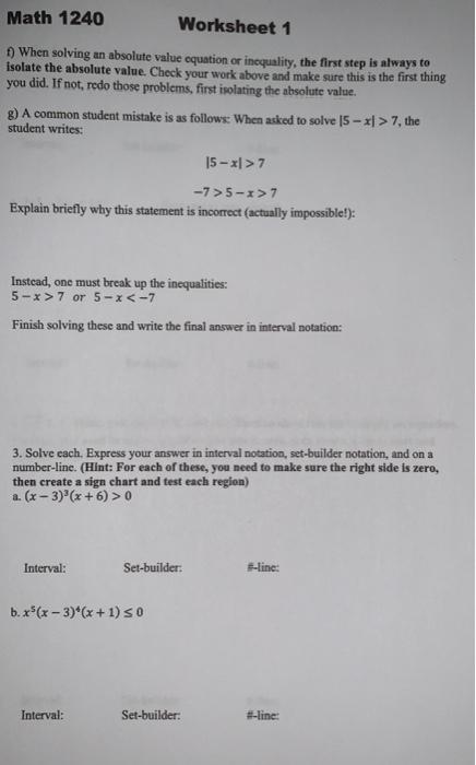. Math 1240 Worksheet 6 b. p(x) = x3 - 3x3 + 3x - 1 2. For p(x ...