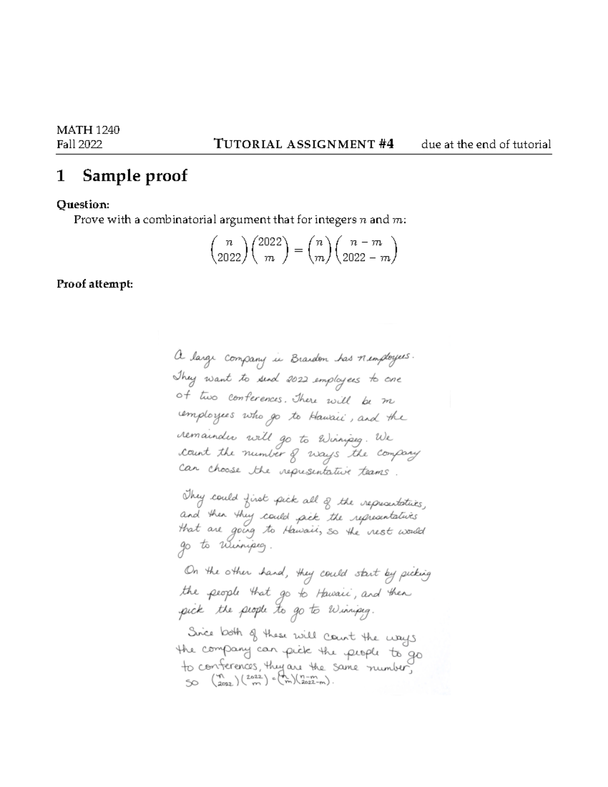 MATH 1240 - Fall 2022 Lab Assignment 1 Solutions and Proofs - Studocu