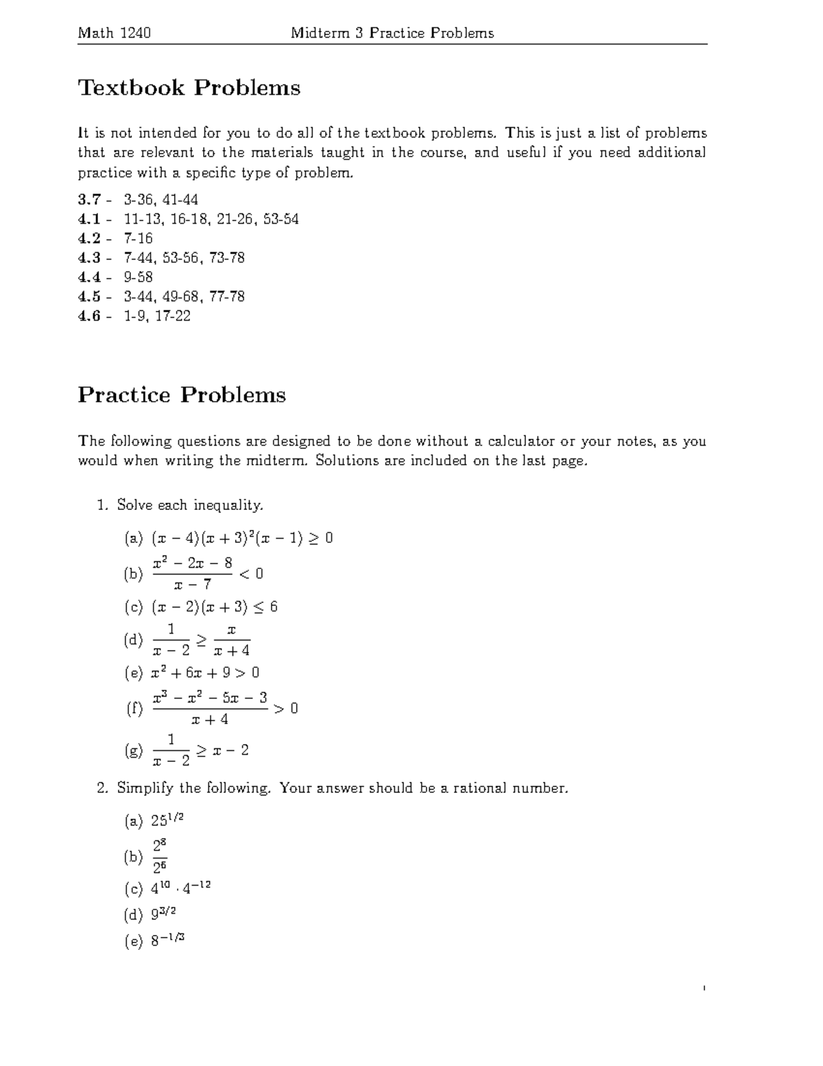 Math 1240 Midterm 3 Practice Problems & Solutions - Studocu